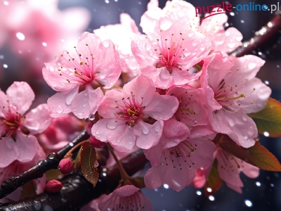 Kwiaty, Gałązka, Różowe, Drzewo owocowe, Krople