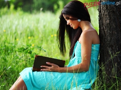 Puzzle Drzewo, Dziewczyna, Książka, Łąka