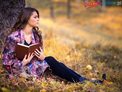 Puzzle Drzewo, Kobieta, Książka, Polana