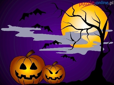 Drzewo, Dynie, Grafika, Dwie, Księżyc, Halloween