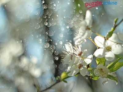 Drzewo, Bokeh, Białe, Kwiaty, Owocowe