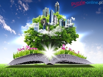 Drzewo, Chmur, Książka, Kwiaty, Drapacze
