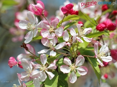 Puzzle Drzewo, Różowe, Kwiaty, Owocowe