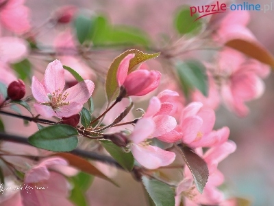 Puzzle Drzewo, Różowe, Kwiaty, Owocowe