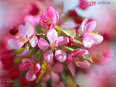 Puzzle Drzewo, Różowe, Kwiaty, Owocowe