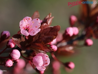 Puzzle Drzewo, Różowe, Kwiaty, Owocowe