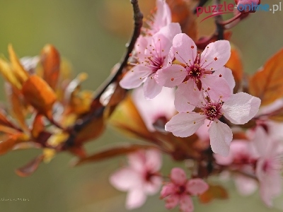 Puzzle Drzewo, Różowe, Kwiaty, Owocowe