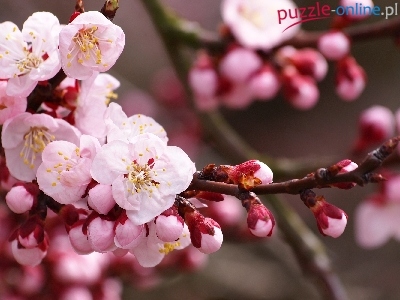 Puzzle Drzewo, Różowe, Kwiaty, Owocowe