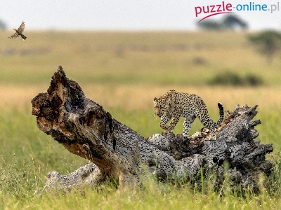 Puzzle Drzewo, Sawanna, Lampart, Ptak