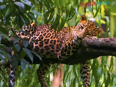 Puzzle Drzewo, Smutny, Lampart, Liście