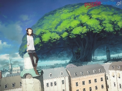 Puzzle Drzewo, Dziewczyna, Miasto, Anime