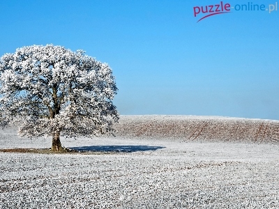 Puzzle Drzewo, Pagórek, Śnieg, Niebieski