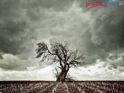 Pochmurne, Po, Pole, Żniwach, Niebo, Drzewo