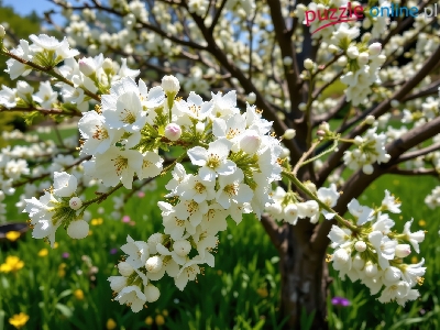 Puzzle Białe, Drzewo owocowe, Kwiaty, Gałęzie