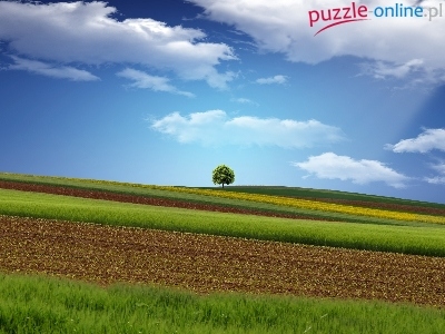 Puzzle Drzewo, Łąki, Pola, Chmury