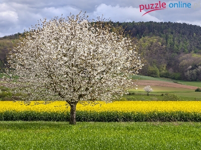Pole, Drzewo, Rzepak, Wiosna, Góra