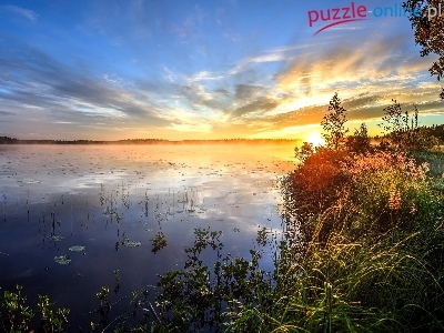 Puzzle Drzewo, Zachód Słońca, Jezioro