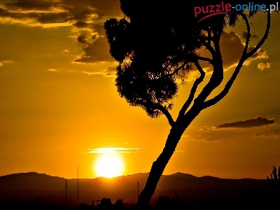 Puzzle Drzewo, Zachód, Słońca, Sawanna