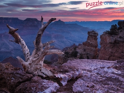 Puzzle Drzewo, Zachód słońca, Suche, Skały