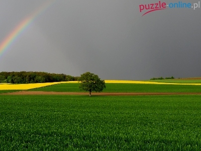 Puzzle Drzewo, Pola, Tęcza, Wieża