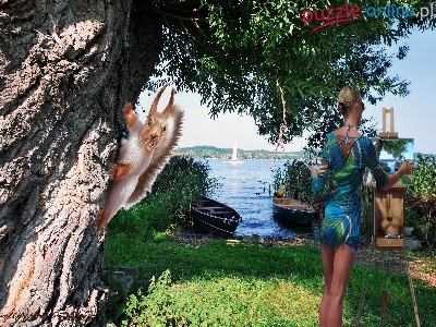 Puzzle Wiewiór, Drzewo, Woda