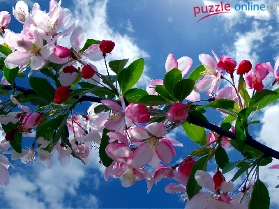 Puzzle Drzewo Owocowe, Wiosna, Kwiaty Wiśni, Niebo