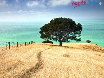 Puzzle Drzewo, Morze, Wybrzeże, Niebo