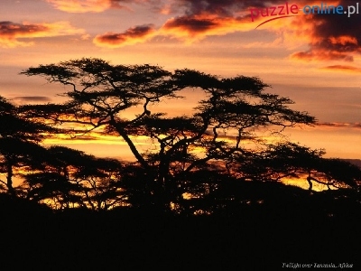 Puzzle Drzewo, Chmura, Zachód Słońca