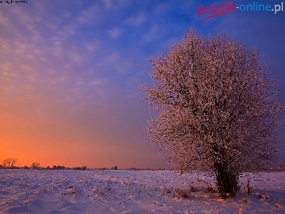Puzzle Drzewo, Zima, Zachód Słońca