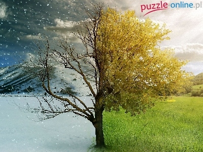 Puzzle Drzewo, Lato, Zima, Wzgórza