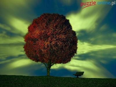 Puzzle Ławka, Zorza polarna, Drzewo, Jesień