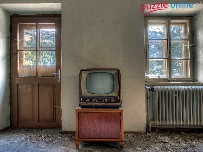 Telewizor, Okno, Zaniedbane, Wnętrze, Drzwi