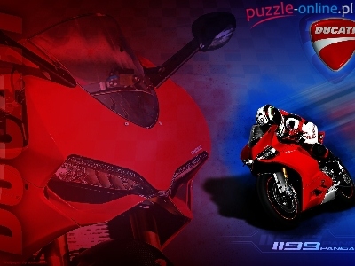 Puzzle Logo, Ducati 1199 Panigale, Czerwony, Motocyklista.