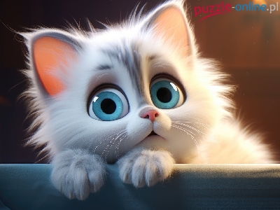 Biały, Duże, Kotek, Grafika, Oczy