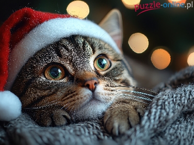 Czapka, Kot, Bury, Duże, Mikołaja, Oczy