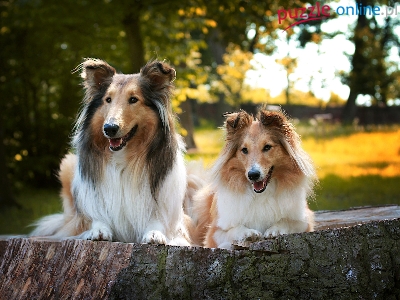 Psy, Park, Drzewa, Pień, Owczarki szkockie długowłose, Dwa
