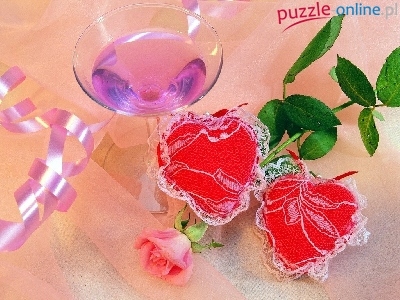 Dwa, Miłość, Róża, Kieliszek, Serca