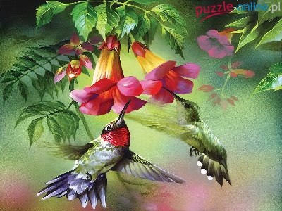 Puzzle Kolibry, Dwa, Kwiaty