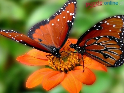 Puzzle Dwa, Pomarańczowy, Kwiat, Motyle