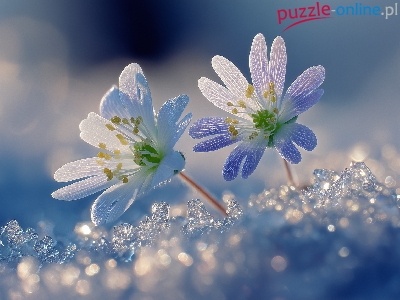 Puzzle Åšnieg, Dwa, Kwiaty, Grafika AI