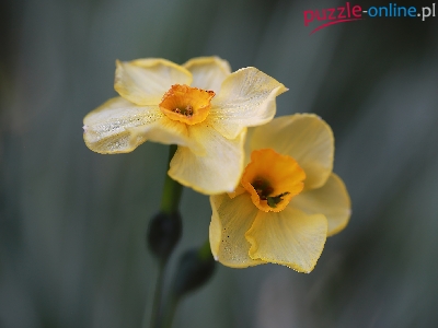 Narcyzy żonkile, Żółte, Dwa, Zbliżenie, Kwiaty