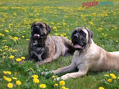 Dwa, Trawa, Psy, Łąka, Mlecze, Leżące