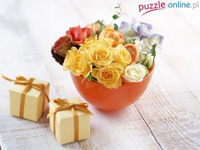 Puzzle Dwa, Kolorowe, Różyczki, Prezenciki