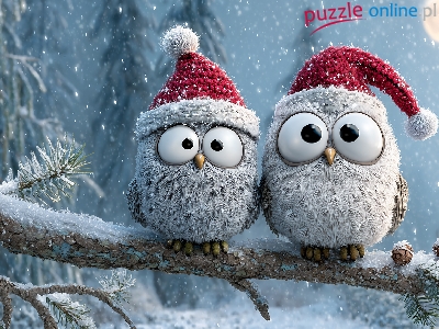 Puzzle Czapki, Dwie, Sowy, Grafika AI