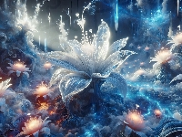 Grafika, Kwiaty, Niebieskie, Dym