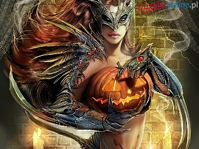 Puzzle Åšwieca, Kobieta, Dynia, Maska