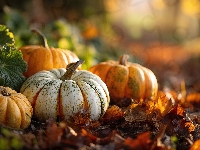 Liście, Kolorowe, Cztery, Dynie, Grafika AI, Suche