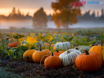 Puzzle Mgła, Dynie, Pole, Grafika AI