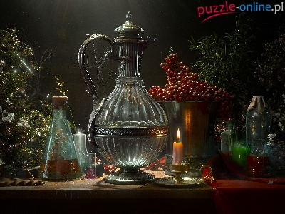 Puzzle Świeczka, Kompozycja, Dzban, Rośliny