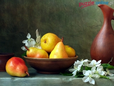 Dzbanek, Kwiaty, Kompozycja, Gruszki, Kamionki